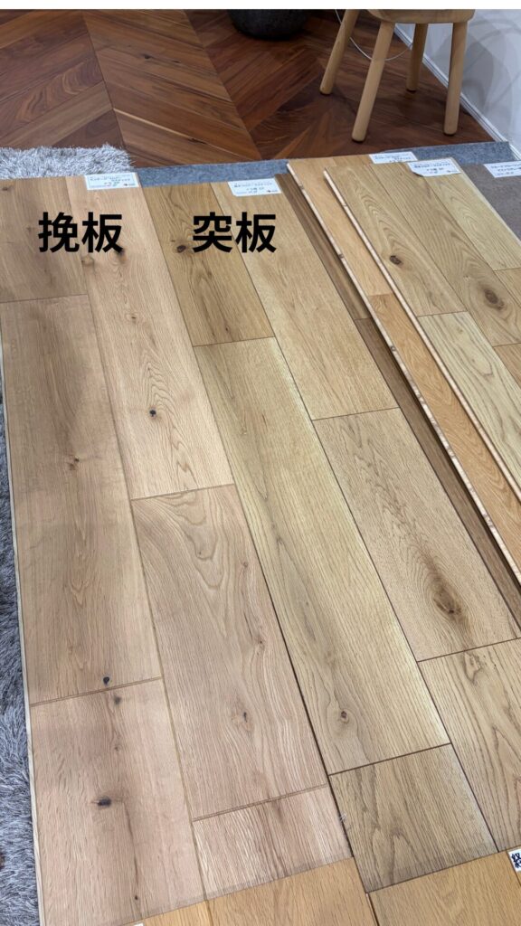 圧倒的に、【銘木フロアーラスティック(突板)のナラ2P】ですね。建築価格が上がっている中、「仕様にお金をかけられないが、床材にこだわりたい」というお客様が、コスパの良い突板を選ばれている印象です。ショールームを見にこられるお客様も、ナラ(オーク)目当ての方が多いですね。3Pより、2Pの方が幅が広く、部屋を広く見せる効果があります。