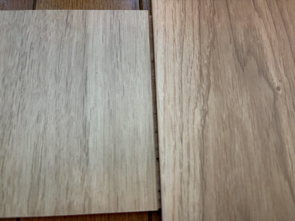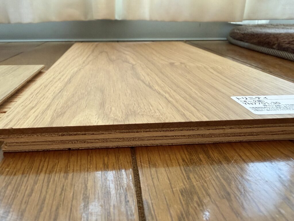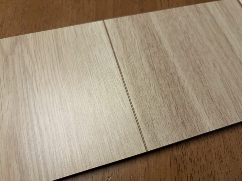 今回のパナソニックとDAIKENトリニティも、まさにそのパターンでした。どちらも化粧シート材——なのに、並べた瞬間「これ、本当に同じカテゴリ?」と声が出そうになりました。見た目も、触り心地も、踏んだときの感覚も、ここまで差が出るとは正直思っていなかったです。