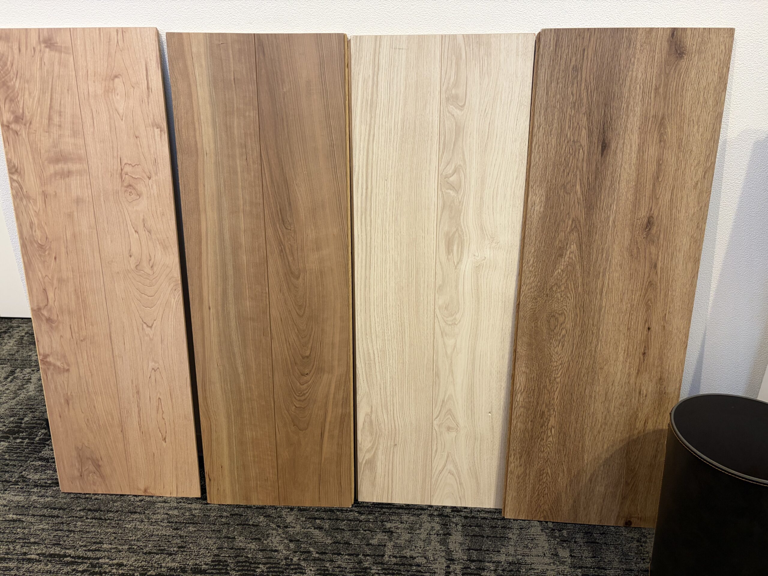 特に濃い色(ウォールナット系)は光の反射でシートっぽさが際立ちやすく、逆にオーク〜メープルの薄い色の方がシート感が目立ちにくい傾向があります。遠目で見ると木目が見えなくなる点も、シート材の特徴です。