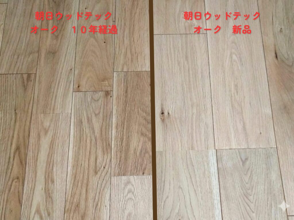 「10年後に新品と比べて悪くなっていたら嫌」→ラシッサD。「10年後に味が出ていたら嬉しい」→朝日ウッドテック。この感覚の違いで選ぶのが正直なところです。