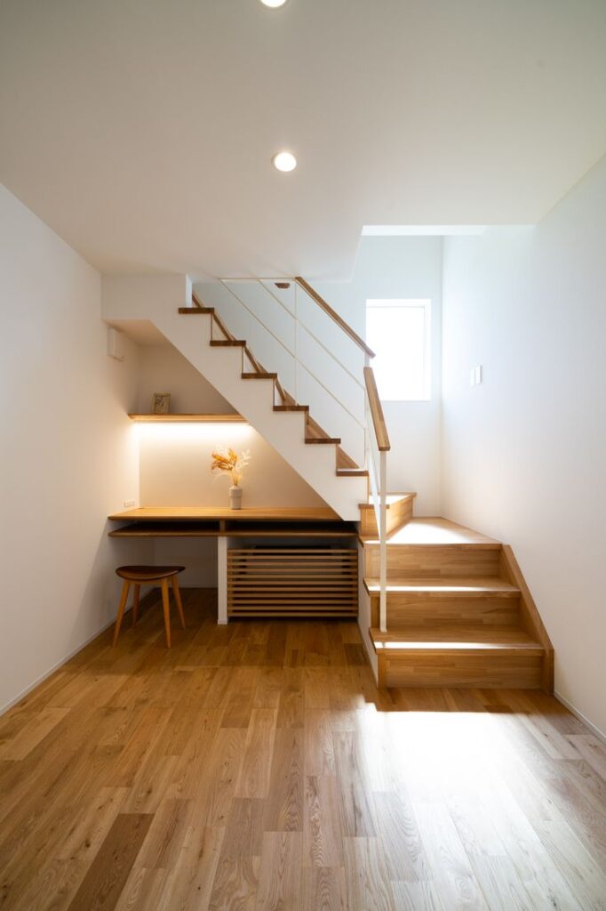 そのため、自室にも机はありますが、リビングでも快適に勉強できる間取りを意識しました。具体的には、スタディースペースをダイニング後ろに作る、階段下ヌックを作る、です。確かに、リビングは他の家族もいるので音の配慮などは必要ですが、受験期は限られているので、その期間はみんなで配慮して乗り越えよう、という感じです。