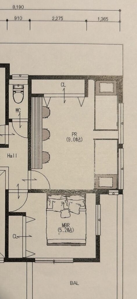 また、主人が音楽をしており、防音室に7畳つかうことは決まっていたので、子供部屋に使える面積は9畳でした。
