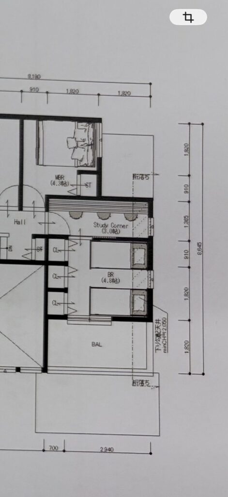本当は⬇️のような半個室勉強スペースが欲しかったのですが、9畳では限界がありました・・・。この間取りには、12畳くらいいるんですね😭