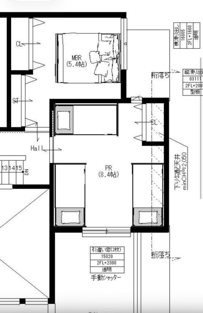 我が家が最終的に採用したのは、こちらの間取りです。ご覧の通り、9畳→8.4畳に減っています。