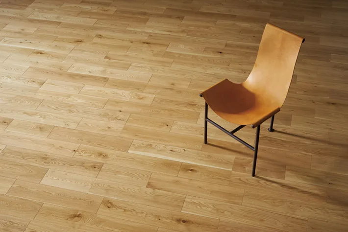 - 挽板(ひきいた):のこぎりで切り出した厚さ約2mmの天然木を表面に使用。厚みがあるため、触った時の質感・踏み心地が無垢フローリングに非常に近い。