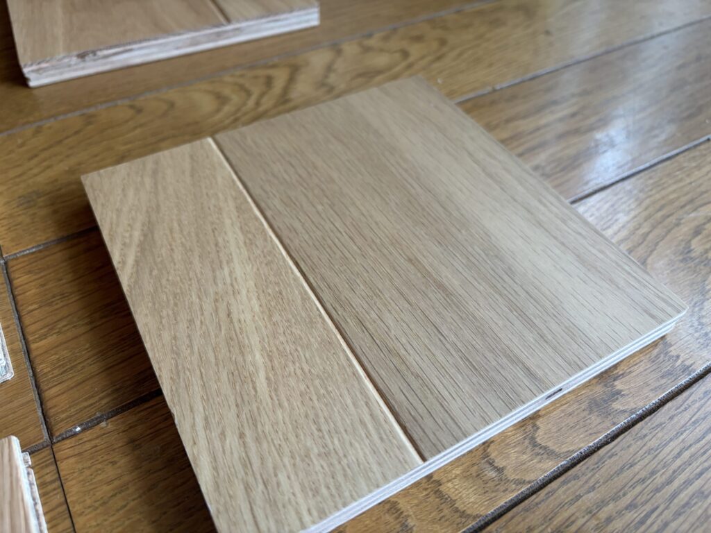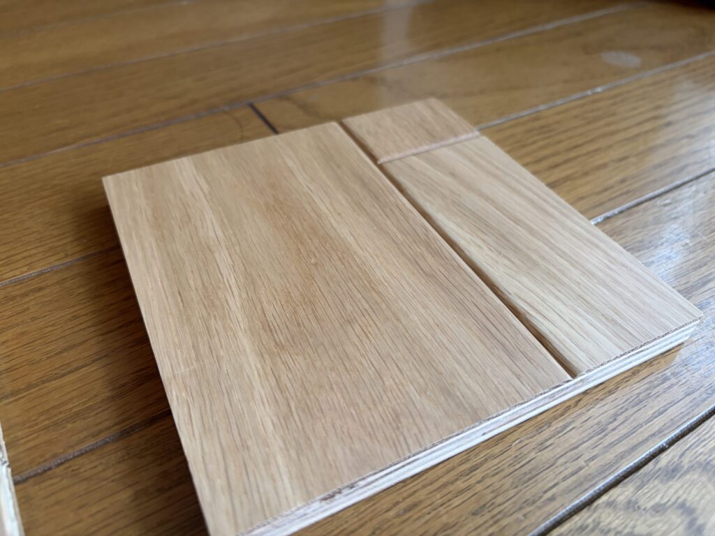カタログ写真だと正直、挽板と突板の差はほとんどわかりません。違いは「触って・踏んで」初めてわかるもの。それなのにネットだけで判断しようとするから迷うんです。