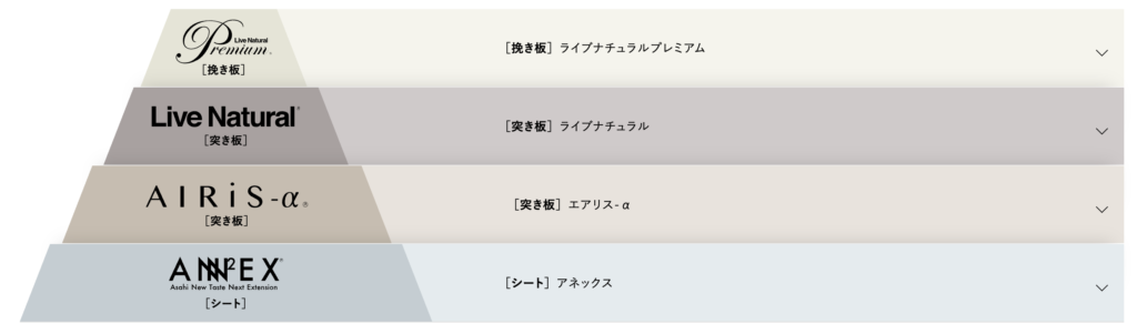 朝日ウッドテックでは、大きく4つのシリーズがあります。今回比較するのは上位2シリーズです。