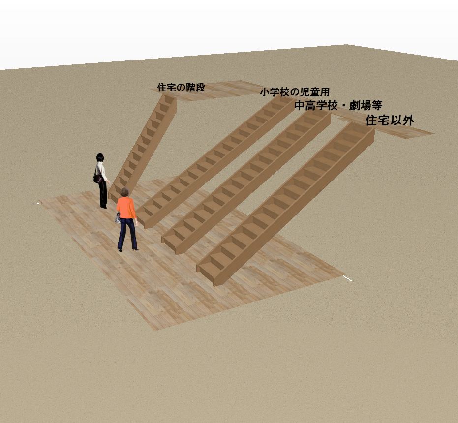 この図をみると、いかに住宅用の階段が他の施設と比べて急になりがちかわかります。